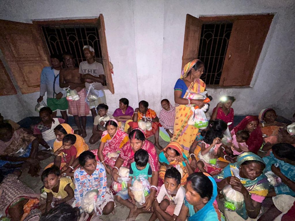 Corporation & Police came forward to arrange for shelter at Government School and the lunch were arrange by Ballavpur Out post.We were in touch and decided to arrange the dinner for them as the time was very less we immediately called all the members and arranged dry foods like puffed rice, biscuit,cake,etc.